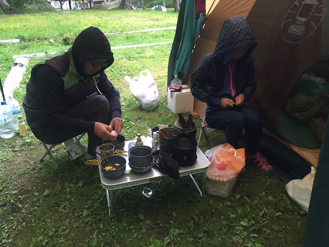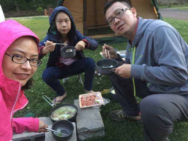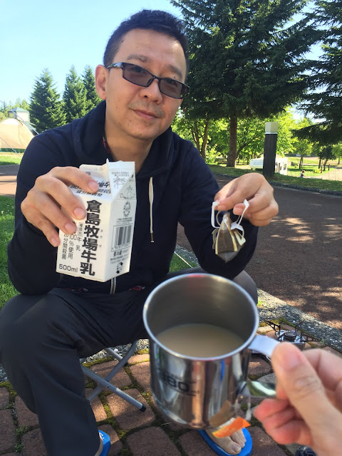 聽另一邊營地的台灣家庭說,而且他們的早餐跟昨天晚上沒吃完的泡麵,都給狐狸偷走了,而且昨天傍晚他們營地附近有5-6隻蝦夷鹿出沒,可惜那時候我們去泡湯了,無緣
