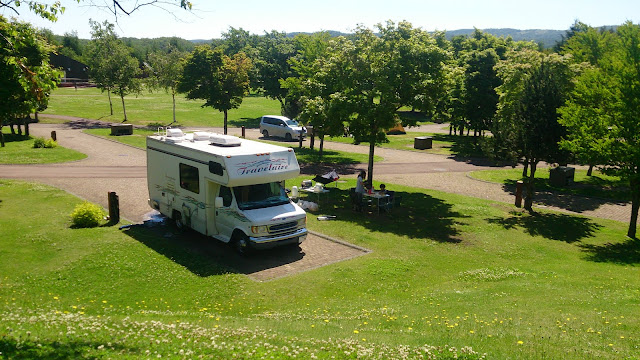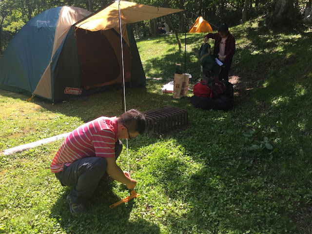 這是兩個比鄰的兩個營位,右邊有位仁兄也是腳踏車露營,左邊沒入鏡頭的帳篷就是要腳踏車環北海道的邁阿密情侶的帳篷